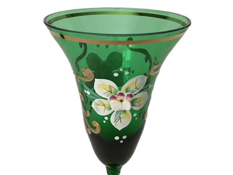 Bohemian Crystal High Enameled Glasses Green 150 ml / 5 oz - Hand Made in Czech Republic