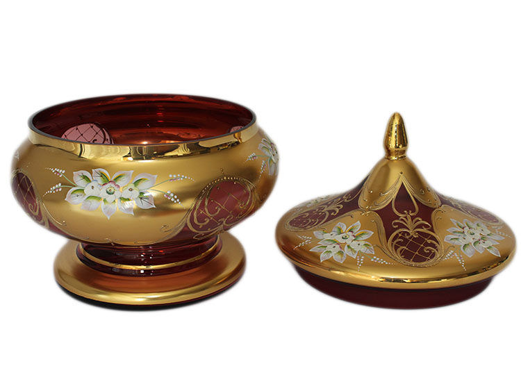 Bohemian Crystal High Enameled Bowl Apple Ruby/Red - Hand Made in Czech Republic
