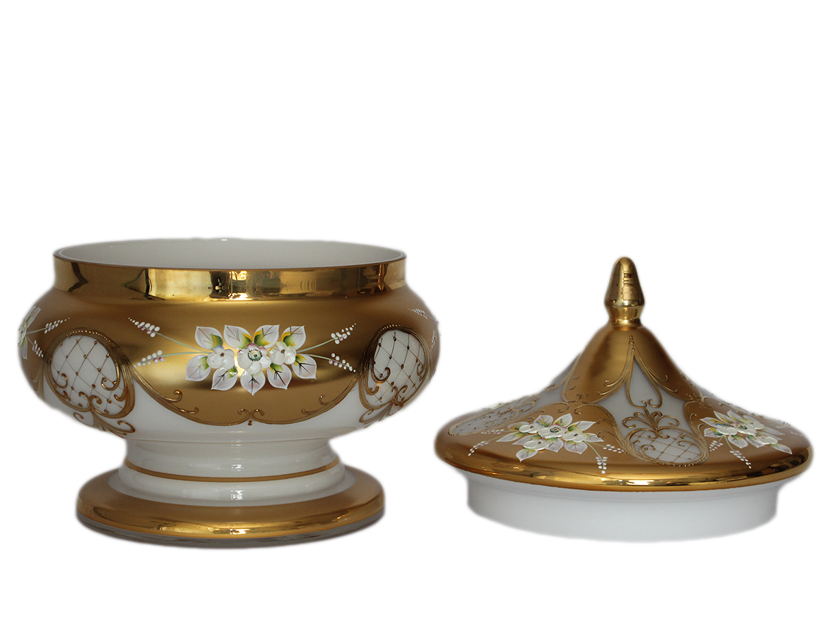 Bohemian Crystal High Enameled Candy Bowl Pear White Color - Hand Made in Czech Republic