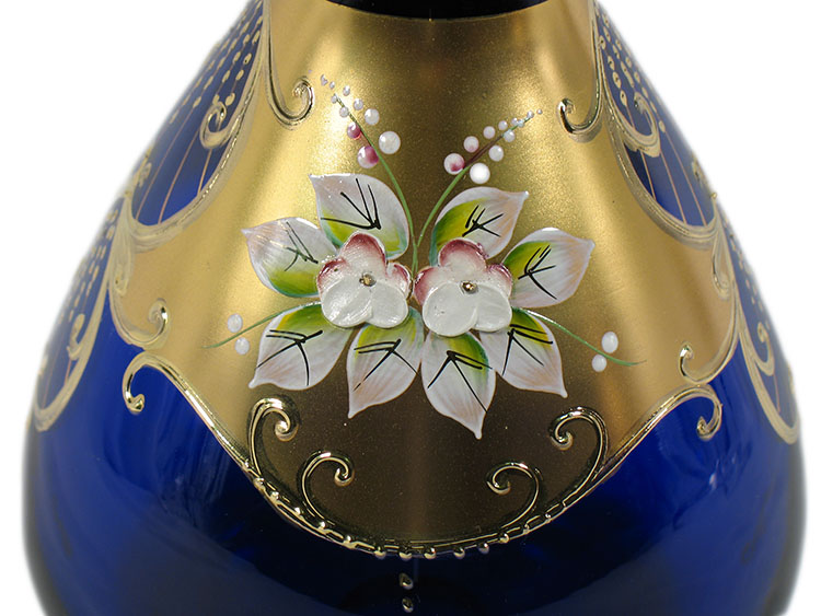 Bohemian High Enameled Hand Painted Vase Blue 30cm / 12" - Hand Made in Czech Republic