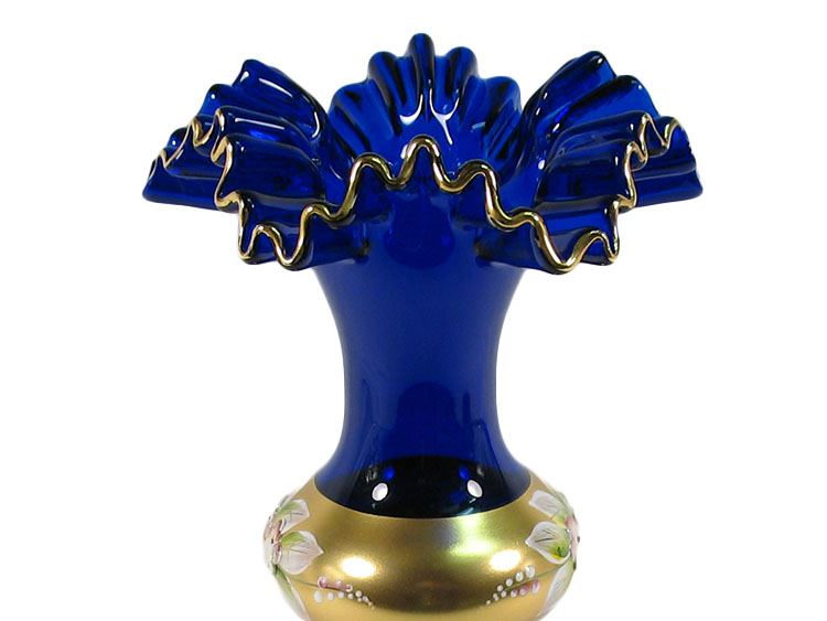 Bohemian Crystal High Enameled Hand Painted Vase Blue 31cm / 12.25" - Hand Made in Czech Republic