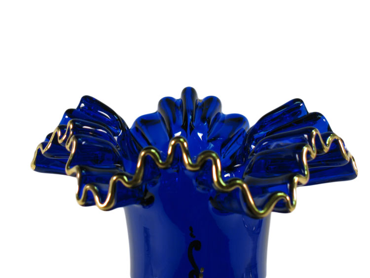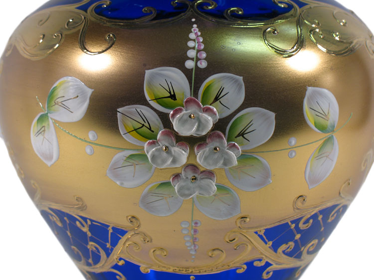 Bohemian High Enameled Hand Painted Vase Blue 30cm / 12" - Hand Made in Czech Republic
