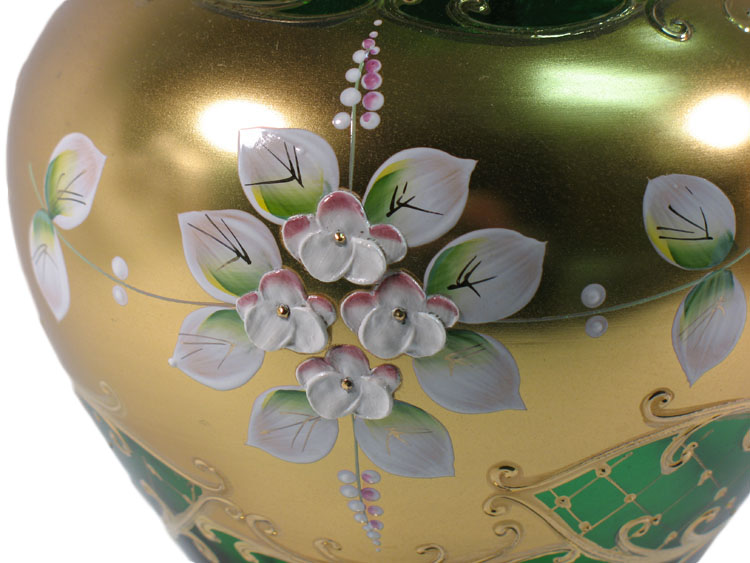 Bohemian High Enameled Hand Painted Vase Green 31cm / 12.5" - Hand Made in Czech Republic