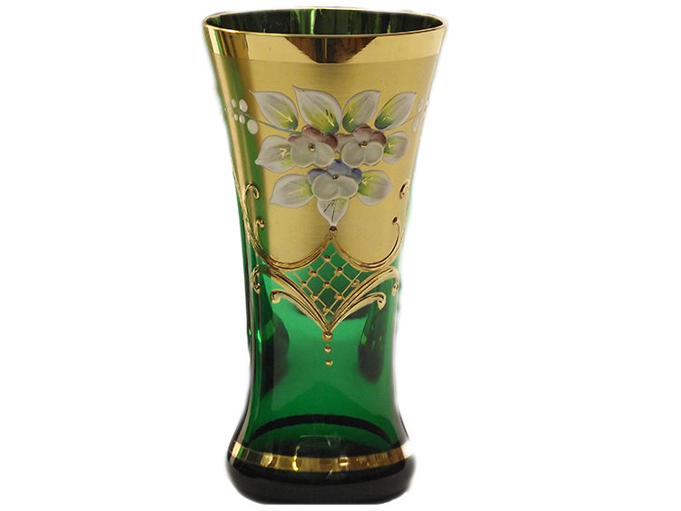 Bohemian Crystal High Enameled Glasses Green 120 ml / 4.25 oz - Hand Made in Czech Republic