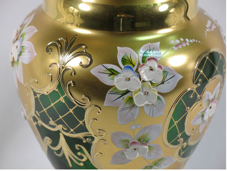Bohemian Crystal High Enameled Hand Painted Vase Green 30cm / 12" - Hand Made in Czech Republic