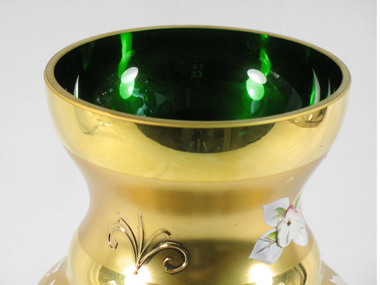 Bohemian Crystal High Enameled Vase Green 31cm / 12.25"