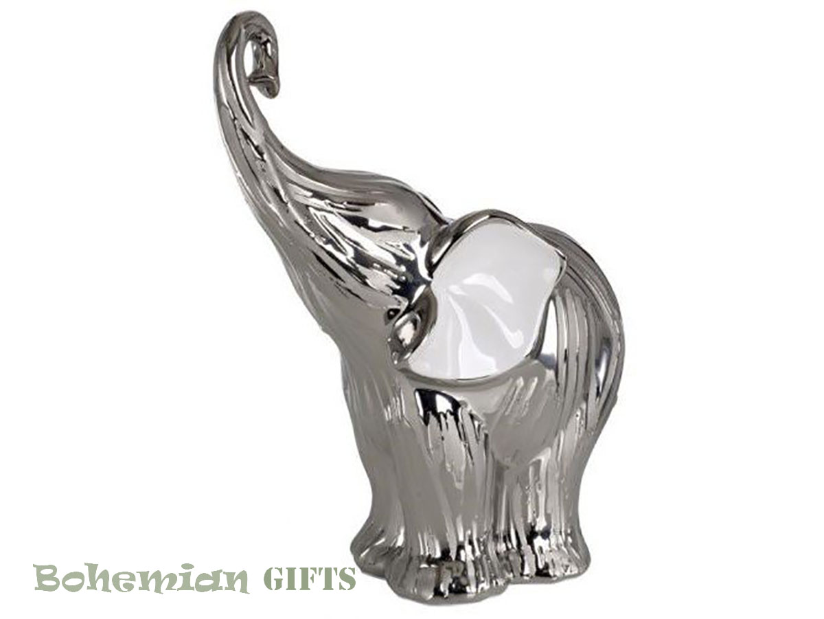 BohemianGift Collection Trunk Raised Wealth Lucky Elephant Figurine Statue - Porcelain Statue with precious 925% Silver - It Symbolises Strength Power Stability & Wisdom