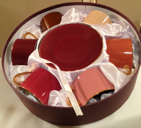 Yedi Houseware Classic Coffee and Tea Aubergine Teacups and Saucers, Purple/Brown, Set of 6