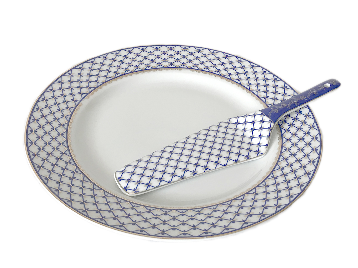Add a graceful touch to your table with the Cobalt Net 2-pc Cake Set, Lomonosov Design. The Cobalt Net pattern was designed under the order of Catherine the Great at the end of the 18th century, and became an official pattern of the Lomonosov (Imperial) Porcelain Factory.