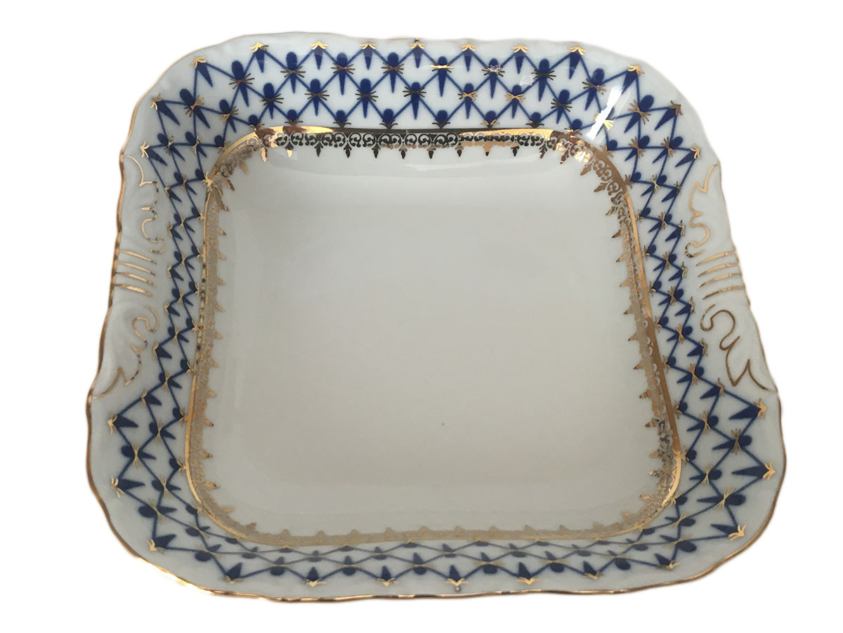 Cobalt Net Serving Dish Roma - Hand Made in Czech Republic