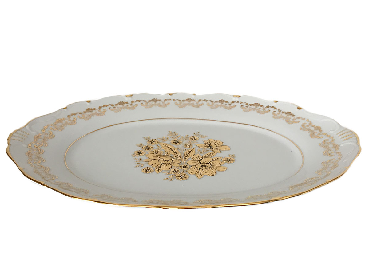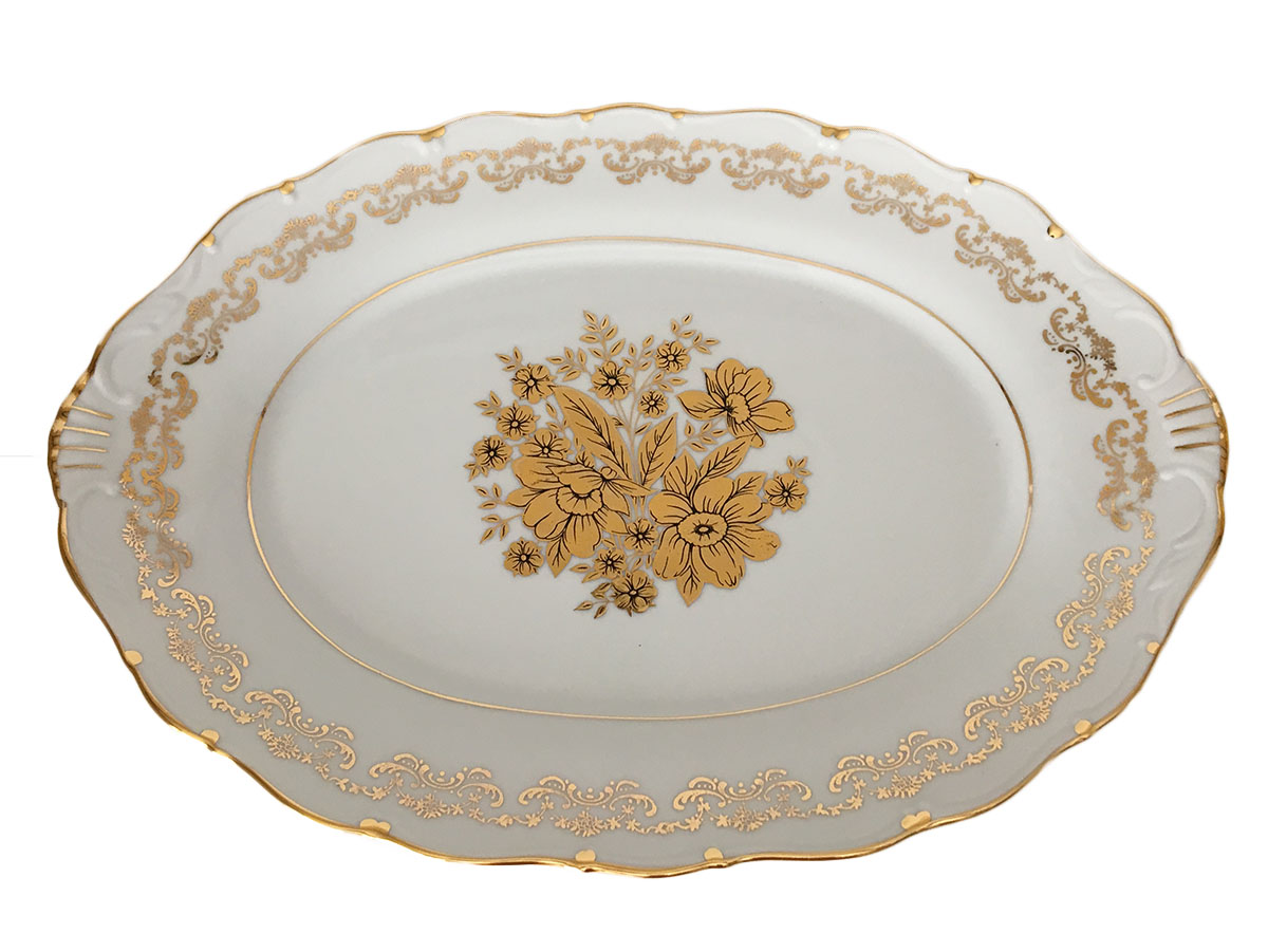 Golden Flower Oval Dish 36 cm / 14 in - Hand Made in Czech Republic