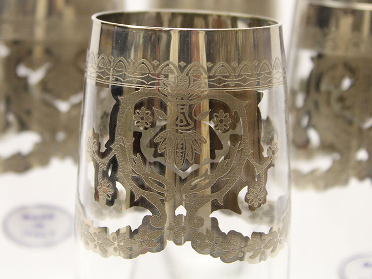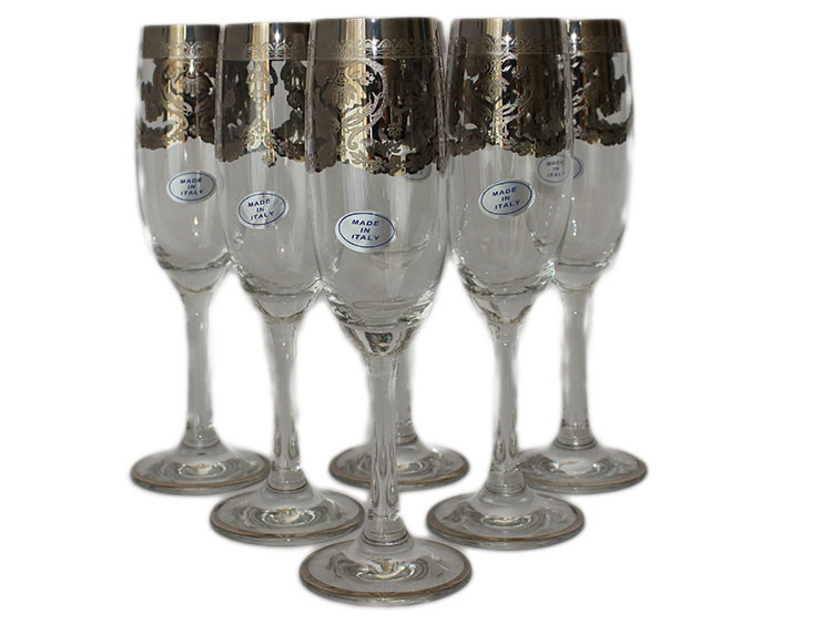 Italian Versace Crystal Wine Glasses Gold And Black Design 200ml / 7oz Set of Six - Italian Made