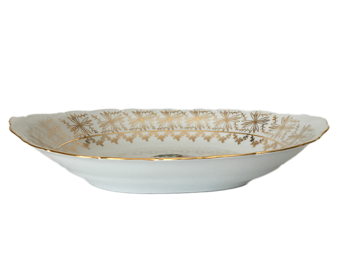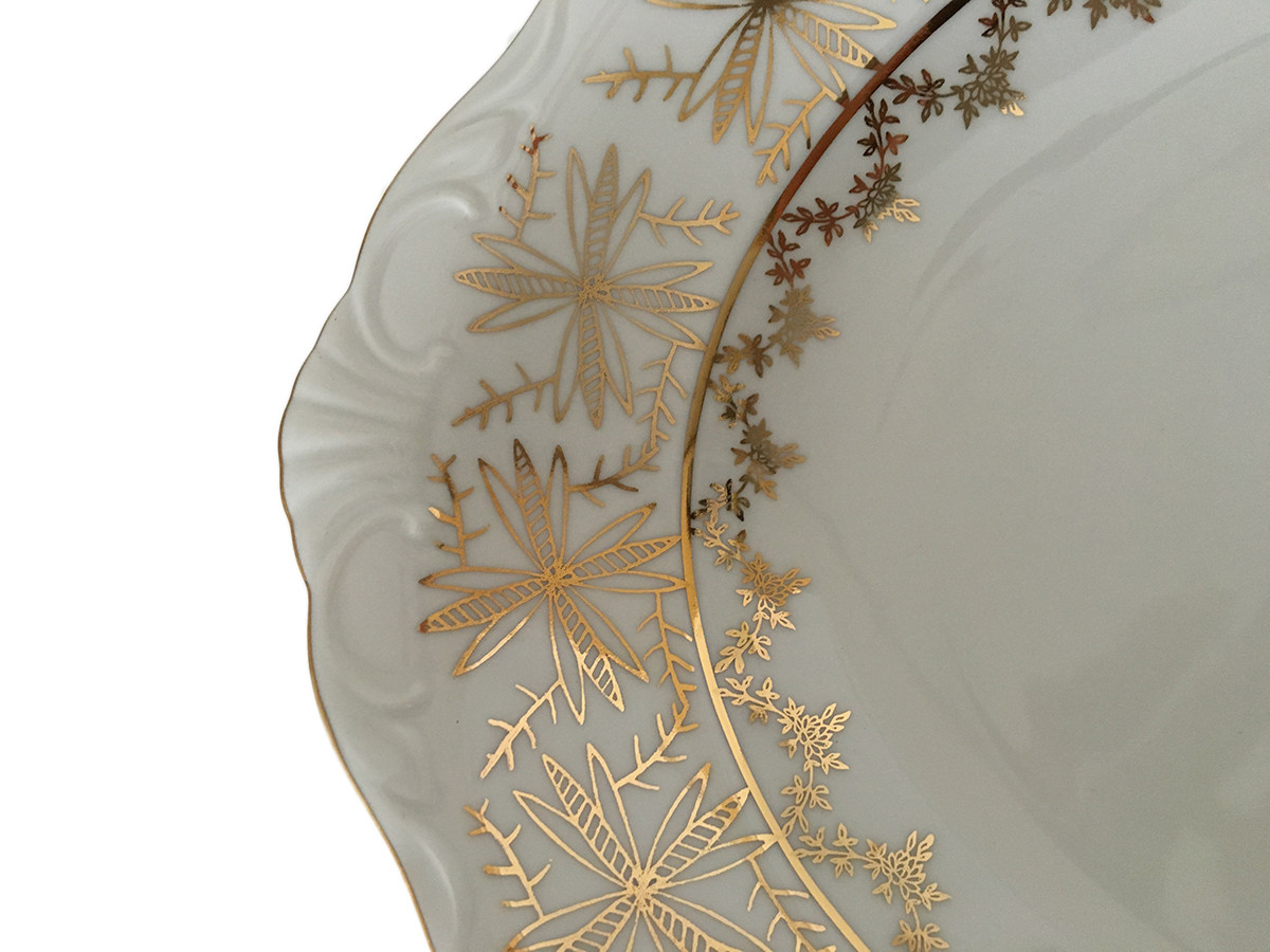 this Serving Dish is entirely hand made and decorated with 24-karat gold.