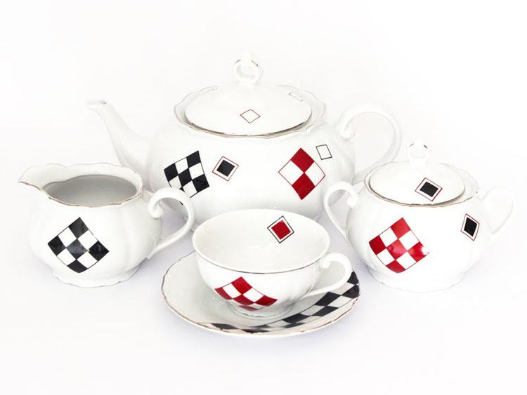 Made in Czech Republic by the (Haas & Czjzek) – the first Porcelain Factory in Bohemia, this Tea Set is entirely hand made and decorated with Platinum Trim