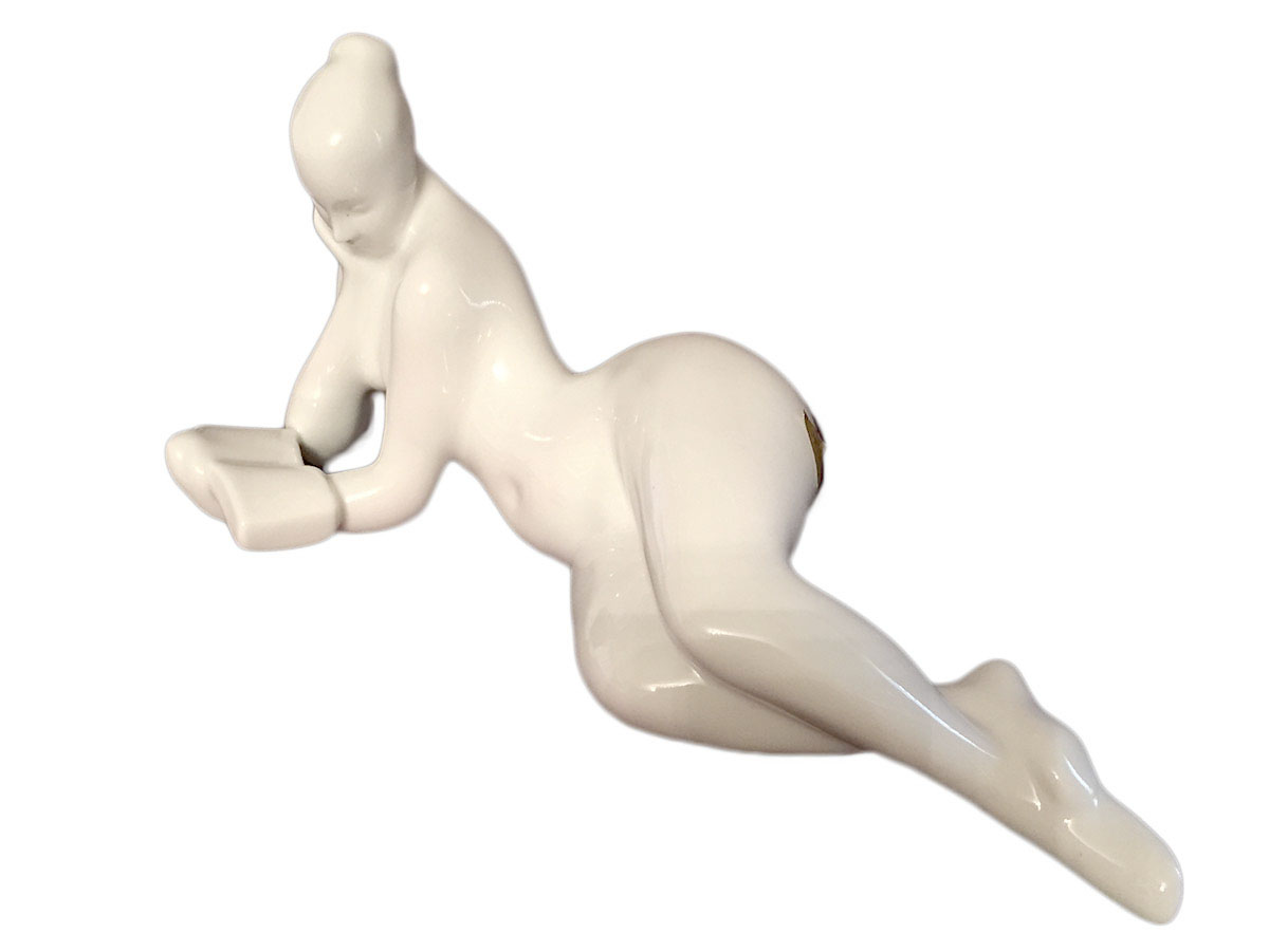 • Amazing elegant handmade Royal Dux white porcelain figurine of a Nude Lady Reader
