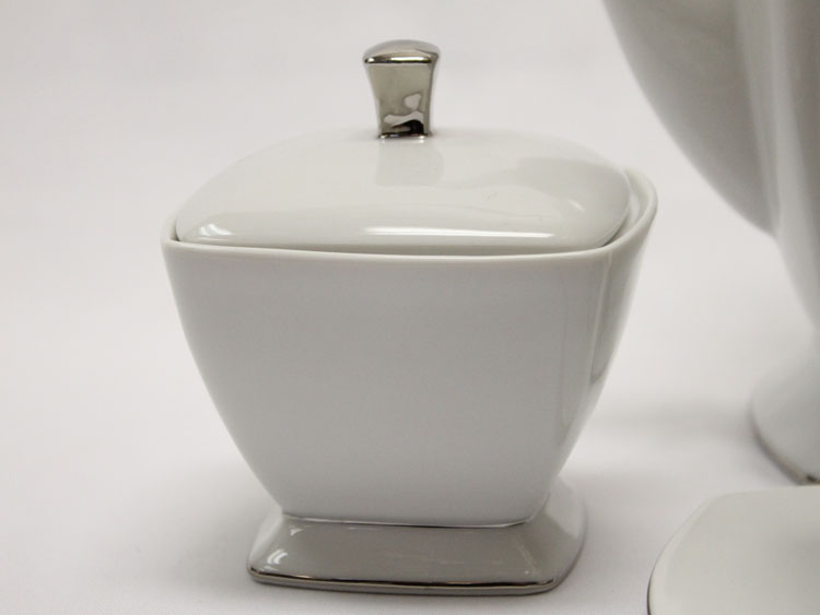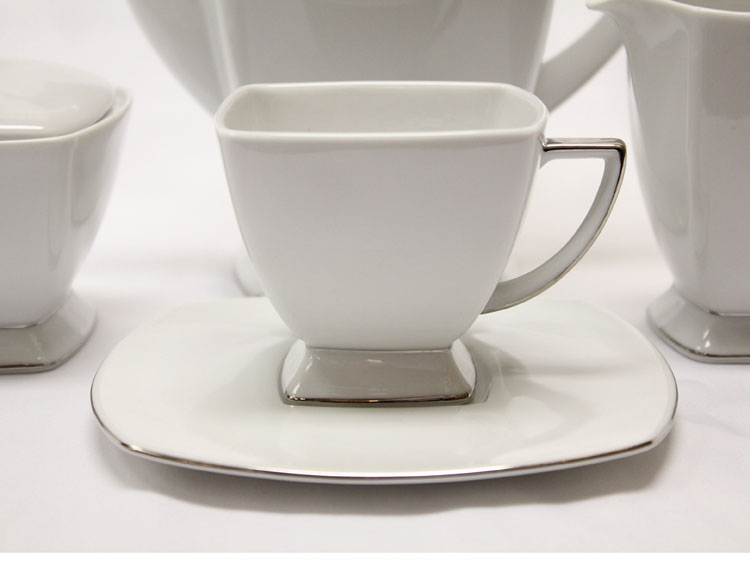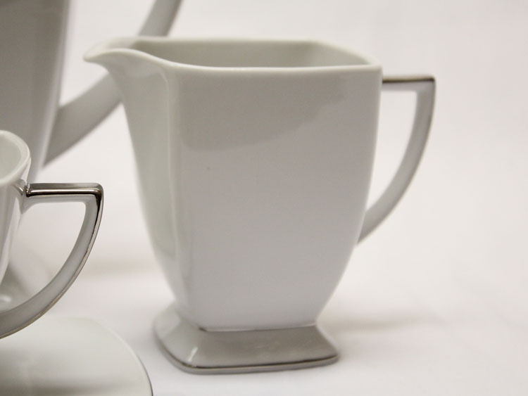 Made in Czech Republic by the (Haas & Czjzek) – the first Porcelain Factory in Bohemia, this Tea Set is entirely hand made and decorated with Platinum Trim