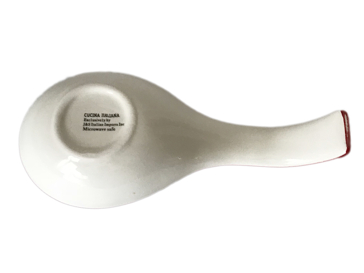 - Made of ceramic and covered with lead-free glaze, this spoon rest has a deep bowl to hold spoons and spatulas while cooking and serving