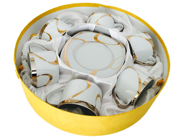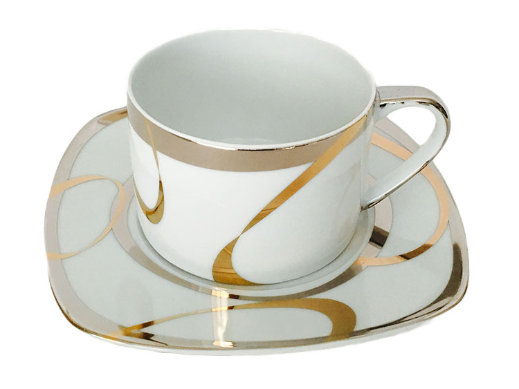 Classic Coffee & Tea Cups and Saucers with Metallic Swirl Design Set of 2